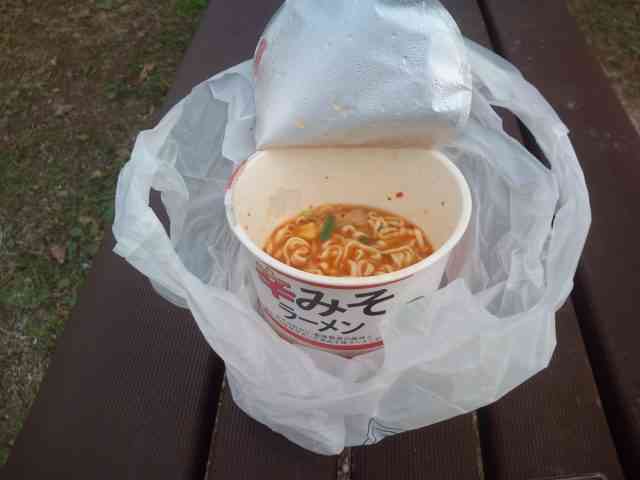 温かいものも欲しかったのでコンビニでラーメンも買ってきました。